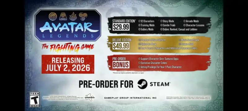 Avatar Legends: The Fighting Game is set to launch on PC, PS5, Xbox series platforms, Nintendo Switch and Nintendo switch 2 on July 2nd 2026.