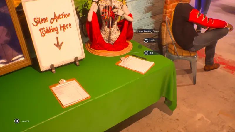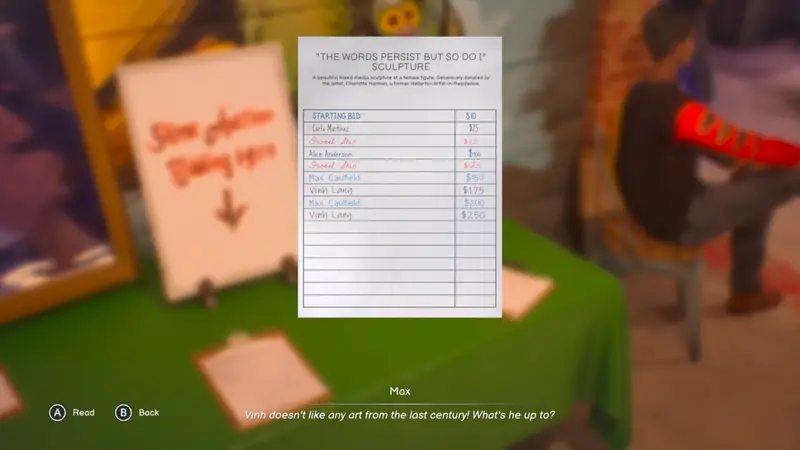 You will now be able to head back to the table and interact with the auction again to see that Vinh has outbid you! This cannot stand, so bid once again.
