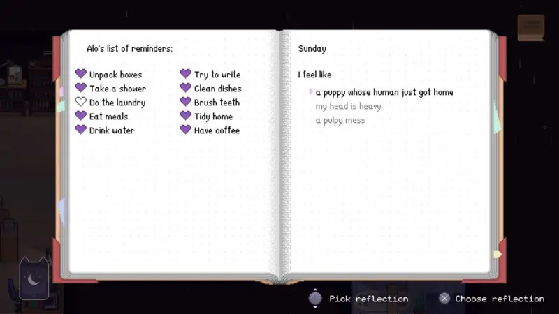 Meanwhile, the act of doing laundry, cooking for myself, and maintaining our home, while still presents itself with that same chore-like actions, felt rewarding (perhaps it’s because I saw Alo’s happiness gauge go up…WAIT, are they trying to tell me that I need to take of myself?!)