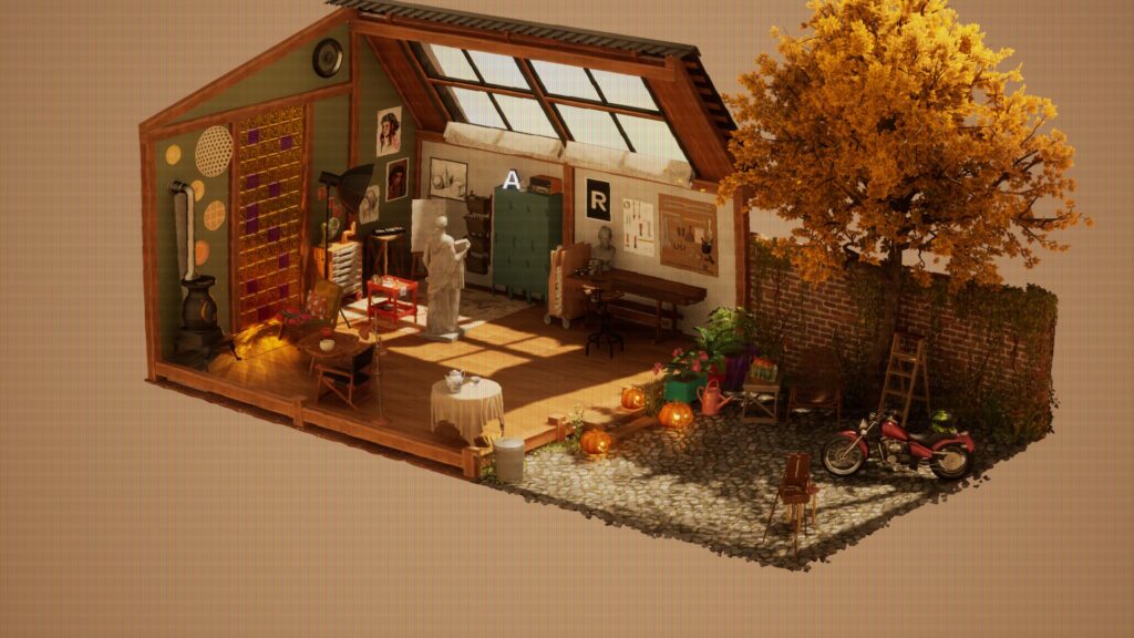 Some levels of Hozy include multiple rooms, indoor and outdoor, each having their own acoustics. As the camera spins, sounds shift and blend. Yann Van Der Cruyssen, composer for other games like Stray, Seasons After Fall, and Cave Story, created an alluring soundtrack for Hozy. Each song flows into another, creating a seamless auditory transition without breaking the immersive experience.