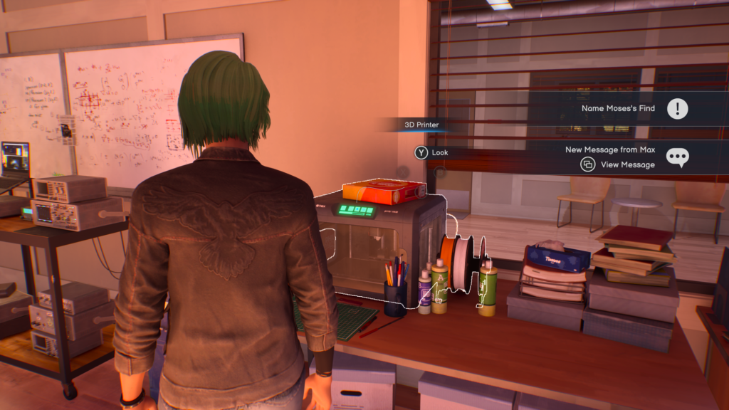 You should now have a prompt that you can talk to Moses so head back downstairs. When you talk to him you should now have an option to ask about the 3D printer. Doing so will eventually lead to Chloe getting an item which we can use in a later chapter to unlock the achievement.