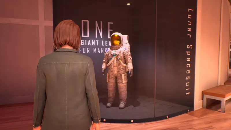Continue through the Planetarium until you pass a set of stairs. Just past the stairs you will see a Spacesuit exhibit on your right. Snap a photo of it to collect this photograph.
