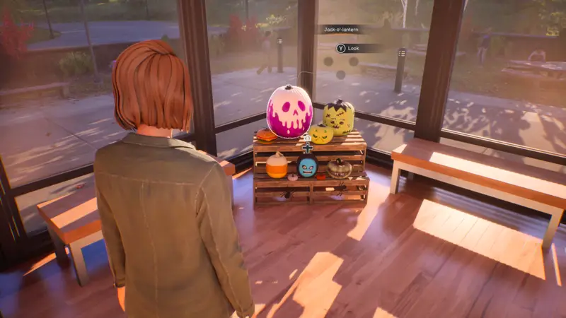 You will be playing as Max and enter the Planetarium. Head left from the door once you can take control and you should see a few benches and a table in the corner. The table will have a bunch of carved pumpkins on it. Pull out your camera and snap a photo of all the pumpkins.
