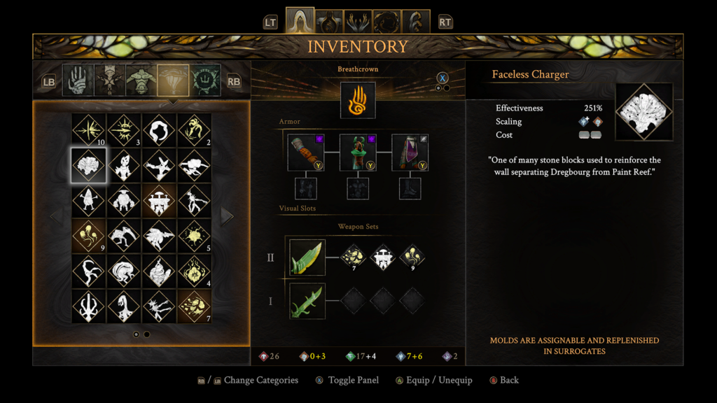 That said, and this is important, the system does have some rough edges. The Paint economy can feel tight, particularly early on when you’re still learning what each Mold does. I’ve had moments where I’d get greedy with summons, run out of Paint mid-fight, and have no way to refill it quickly enough. It’s moments like this when I think the game could have potentially used some consumables to quickly refill a bit of paint (or health) just to let you engage with it a little more smoothly.