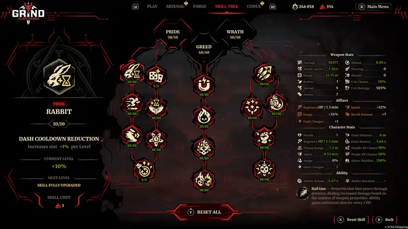 If you don’t have enough dust to max everything and don’t want to do a bunch of half runs, feel free to reset and reallocate. The ones you for sure are going to want are the damage, critical chance percentage, the purple and double XP chances, as well as the health. Remember, you will need at least 1 point in each previous skill to get to the final skills, so just keep that in mind.
