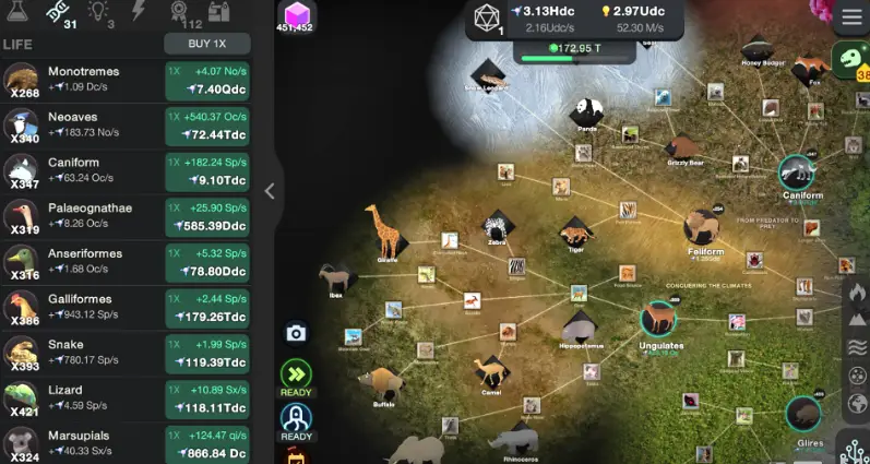 Cell to Singularity is an idle-clicker game with a focus around the entirety of existence. Your clicking will start you at the beginning of time, 4.5 billion years ago, and will bring you through, well, everything! Evolution, human history, the concept of art, and even through the cosmos itself. I would go so far to say that Cell to Singularity is more in line with edutainment that being a free-standing game itself.
