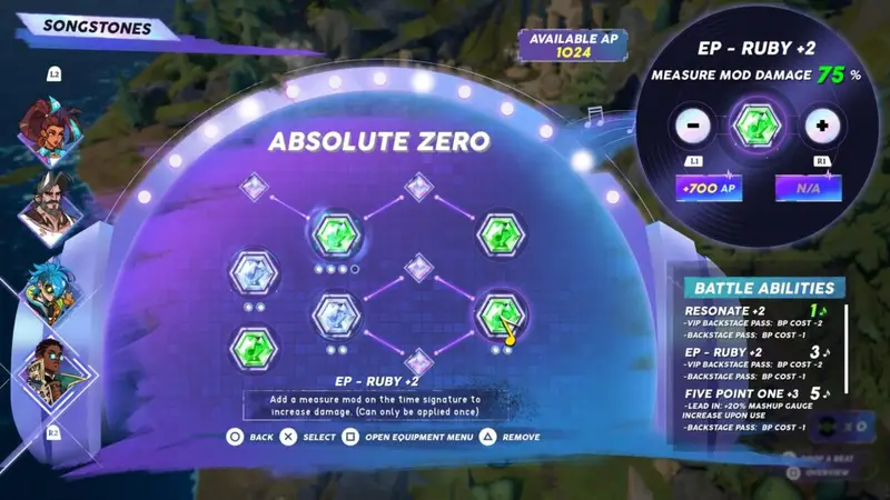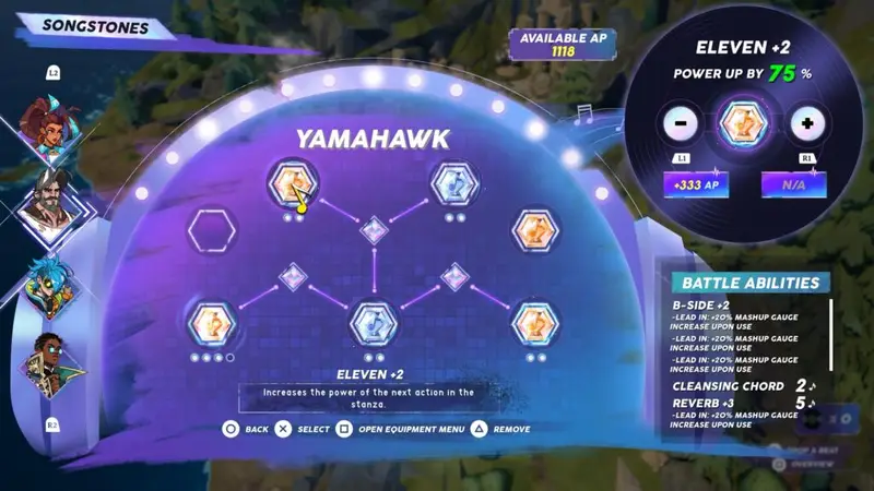 Cadence will be the one attacking. She’ll use the songstone The Belt+4. It should have the remix stone One Hit Wonder. This increases attack by 100% and can be obtained by handing in 15 feathers to Ordinary Al. The other can be Reserve Boost.