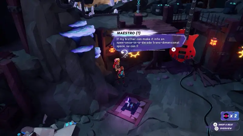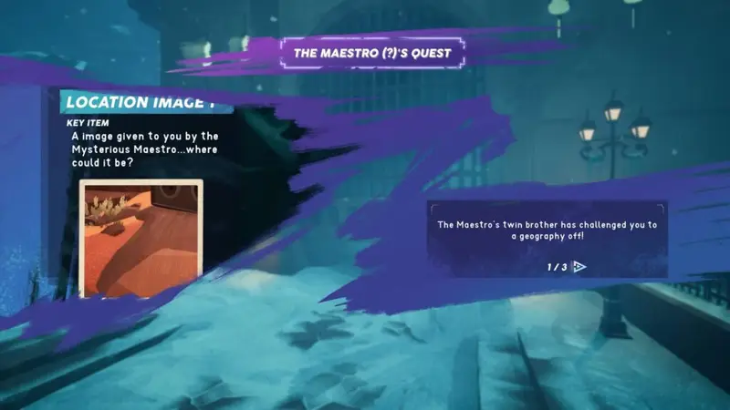Head towards the colourful Sound Check machine in The Arched Center in Archaia. In that corner, you’ll see the (!) you need in order to get Maestro (?) to appear and finally complete your quest!