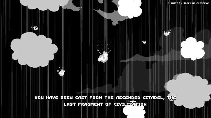 Gunboat God casts you as a standard, run of the mill human bean. At the beginning of the game, the almighty gods, to whom you are subservient, deem you weak and cast you from the “last fragment of civilisation” to your doom below. It’s never explained why ‘The Ascended Citadel’ is the last area of civilisation, but we’re not really here for the backstory, or lore.