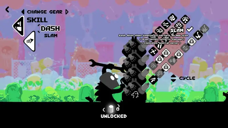 I love the attention to detail, the special bar changes colour to match the colour palette of the level you’re on, for example. Every enemy has its own unique design and personality. Yeti, his tiny croc friend and yourself, the human bean, all have character, Yeti’s being the most expressive.