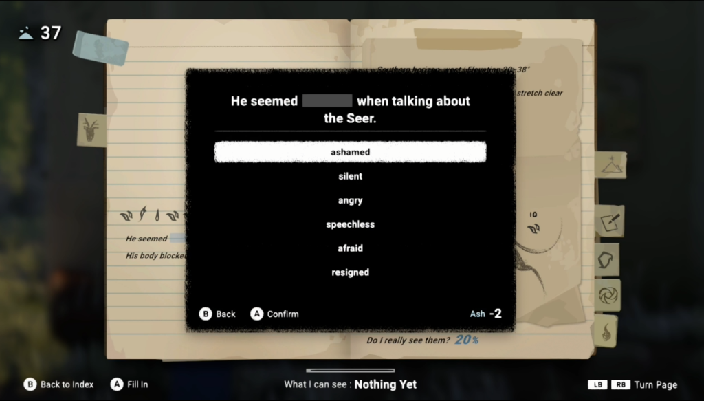 The game doesn’t truly have many puzzles to solve except for the story in the journal. Looking at the murals you’ve taken photos of to know which go where isn’t always the easiest either. In fact, at times I found myself just code jamming pictures in, but thankfully I had plenty of ash to do so. It’s not an ideal way to do so, but I found myself being confused on what certain images were trying to portray. This is perhaps the one are where I wish it was a bit clearer but then there might not be much of a challenge for players who are great at riddles.