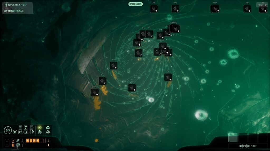 Return to the maze with the Hybrid Mucus frequency equipped, and follow the handprints through the tunnel with the water current for a clearly highlighted path.