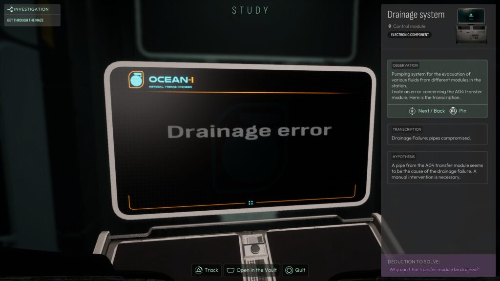The goal is to get into the Transfer Room, but there are a few steps to get in, as a leak is blocking us from entering.