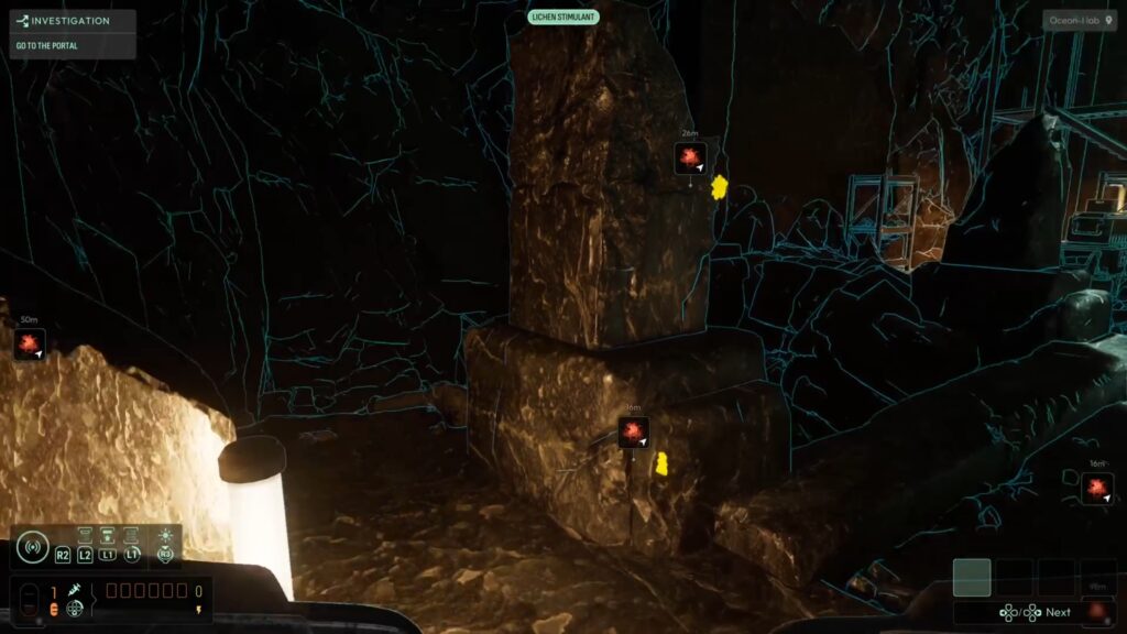 Evolution #7: The next perk is located right before Elsa’s camp on the left side, in some rocks. You will have to enter the water and stick left to get here, but there is very little you have to do but follow the path in front of you. It’s extremely hard to miss, and like the blue lichen in this area, it shouldn’t be too hard to find. If you can’t find it, equip the Elder Glyph sonar frequency, and it should pop up in your HUD.