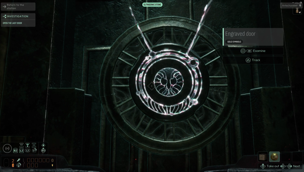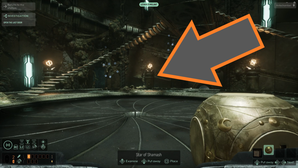 The first step is locating the Prayer of the Masters pillar in the main room and analysing it to unlock the Ultrasonic Stone frequency. It’s one of the two pillars under the platform you entered the room on.