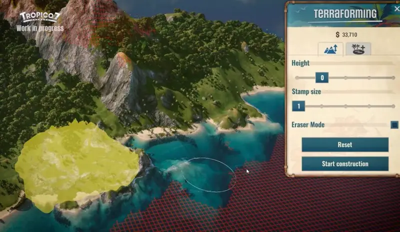 The big focus for the new trailer was showing off the new terraforming mechanics. You could always do terraforming in the previous Tropico games, but developer Realmforge Studios is taking it to a whole new level, allowing players to literally move mountains if they choose.