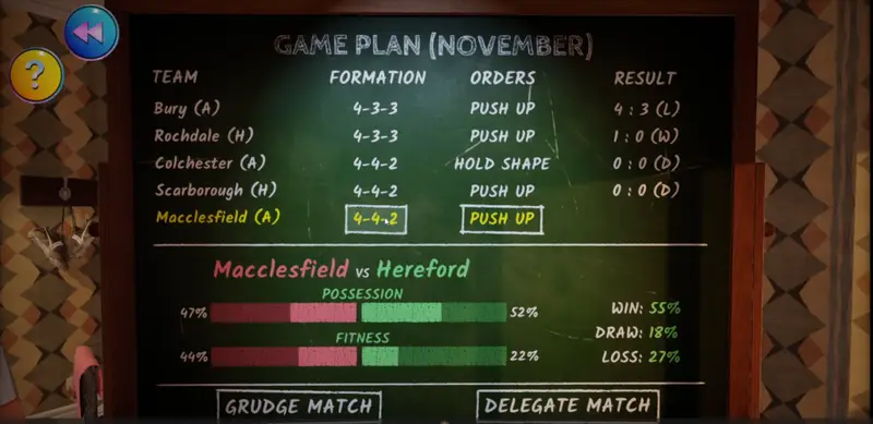 Each weekly match will require you to set-up a fame Plan if you’re Delegating the Match. Delegating means…you won’t actually play it and you’ll let the odds of you winning play out, based on your Orders and Formation guidelines. I’m going to be honest, this is where I started to get lost in the sauce, as I don’t have much knowledge of football and the gameplay styles of a match.