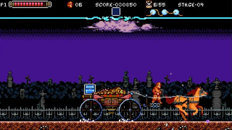 In the 4th stage, you’ll be riding this horse carriage, and falling off will result in a life lost. However, standing on this footing between the carriage and the horse will make the treasure spawn.