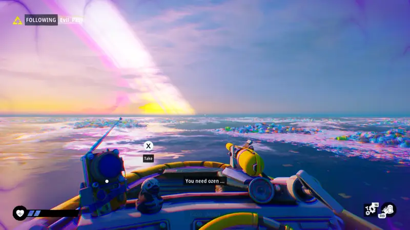 Nahe tells you that humanity is dying from a disease known as plastemia. Plastemia essentially puts plastic in a human’s systems and slowly hardens until you become a plastic, dead body. The powers that be have created Ozen, a temporary way to reverse the effects of plastemia. Ozen essentially works as a health potion for the game. Nahe and many others are looking for a more permanent cure, and that is what they need the Tidewalkers for.