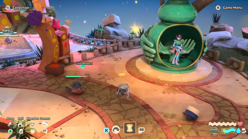 All you are going to want to do is hop into a pot and make sure it has a bunch of water in it by jumping into the water that’s around. The sponges look like tiny little yellow blobs on the ground. You know you will have found the them when you shoot them with water and they grow.