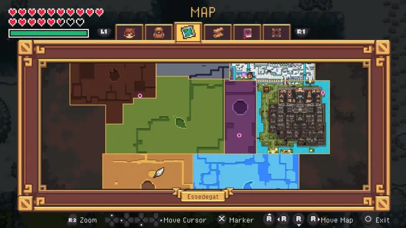 I don’t want to go into too much detail as to what your elements will do, as that’s part of the fun. What I do want to say is that, much like A Link to the Past, these elements will be integral to solve the puzzles of how to kill enemies. You need to use them, often. Once you get more elements, you’ll need to switch between them often as some bosses require you to. R1 (on the Dualsense) will bring up the elemental radial menu. You can also assign L3 and R3 to specific ones allowing for quicker access. You’ll need to do this, as you’ll be in dungeons or boss battles that will definitely require you to use specific ones and switch between them often.