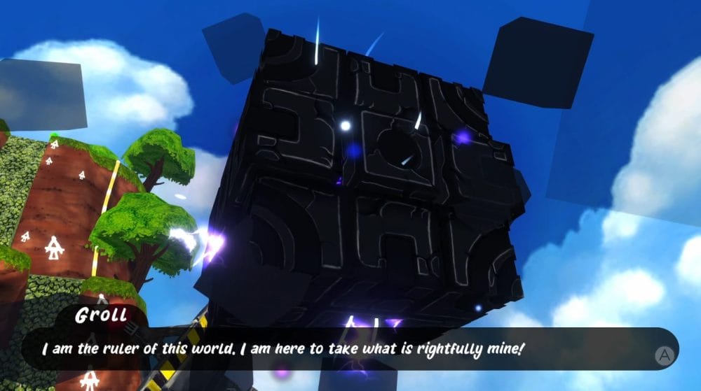 After a rather startling yet charming opening scene that swiftly introduces the player to the Swap mechanic, Ruffy and Pip reflect on 22 days and 7 hours prior, when our adventure begins. When Ruffy helps his gem-obsessed friend, Sir Eddler, begin gathering the Marbles – magical stones able to change the world around them – they accidentally summon the evil Groll, a six-sided fiend intent on obtaining the World Core and bringing doom to Riverside. What started as a simple treasure hunt quickly turns into a mission to save the world, with young Ruffy and his buddy Pip becoming the Chosen Ones. Their goal: to collect the Sacred Symbols scattered across the world of Riverside and return them to the Basilica of Besties, where they will be used to restore the Riverside Town sign (think Hollywood) that was destroyed by Groll, and in turn restore power to the World Core. Did you get all that?