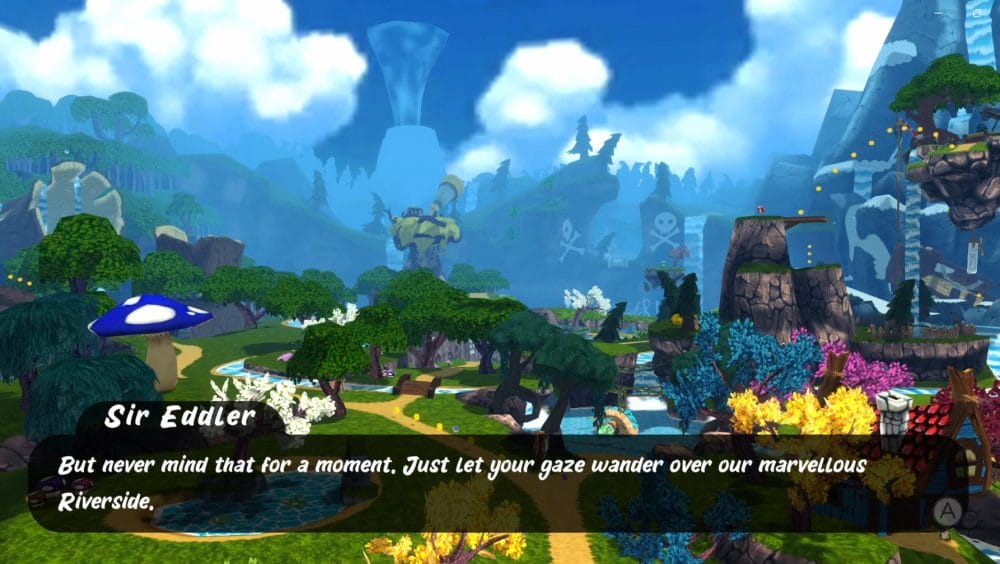 It’s a bizarre set up to a wild adventure, and I had a big, silly grin on my face whenever some new crazy detail was added in the mix. Ruffy and the Riverside is not asking to be taken seriously, but to be enjoyed, and recognised for the hotbed of fun and creativity it offers to the player. It’s a story of MacGuffins, which is par for the course when it comes to collect-athons, set in a land that could only be dreamt up using a vivid imagination, or a lot of illicit substances.