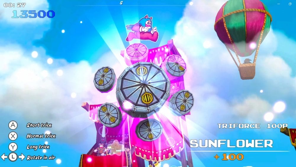 Then there are 3 main collectibles to find, butterflies, dreamstones, and Etoi, as well as gold coins you use to purchase new capes and upgrade their related health and stamina stats at the casino in Riverside Town. Butterflies are gathered for Quintus, Ruffy’s fox friend, who is an amateur lepidopterist, Etoi are little fuzzballs hiding around Riverside, and dreamstones are brought to Pix, a pixelated doppelganger of Ruffy. While the first two are purely tied up in aide quests and not much else, dreamstones also let you manually adjust a texture, and then apply it across the game. Let me tell you, it takes a moment to adjust when you change the yellow sandy beach to a vibrant pink!